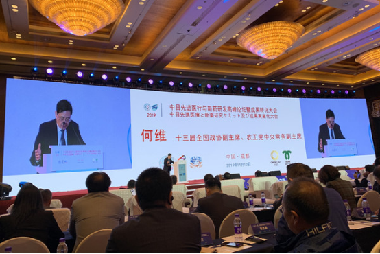 2019年11月10日,由四川省國際醫學交流促進會、日本神戶轉化醫學研究中心(TRI)主辦的“2019中日先進醫療與新藥研發高峰論壇暨成果轉化大會”在成都舉行。本次大會以“對話頂級專家、匯集領先成果、共享投資機遇、促進產業發展”為主題,聚焦醫療技術創制和生物醫藥成果轉化,推動中日兩國生物醫藥產業合作共贏,實現先進醫療科技成果向現實生產力的轉化,共吸引了包括眾多中日兩國專家學者、領軍企業、知名院校、科研機構及投資界人士等在內的1000余人參會,其中醫藥龍頭企業和科研機構超300家,投資機構近100家,醫藥生物領域的專家學者近300人。與會者圍繞醫藥科研進行了深入探索,共尋生物醫藥產業合作契機。全國政協副主席何維,省委副書記、省長尹力,國家藥品監督管理局局長焦紅,日本獨立行政法人醫藥品醫療器械綜合機構局局長佐藤大作出席大會開幕式并致辭。