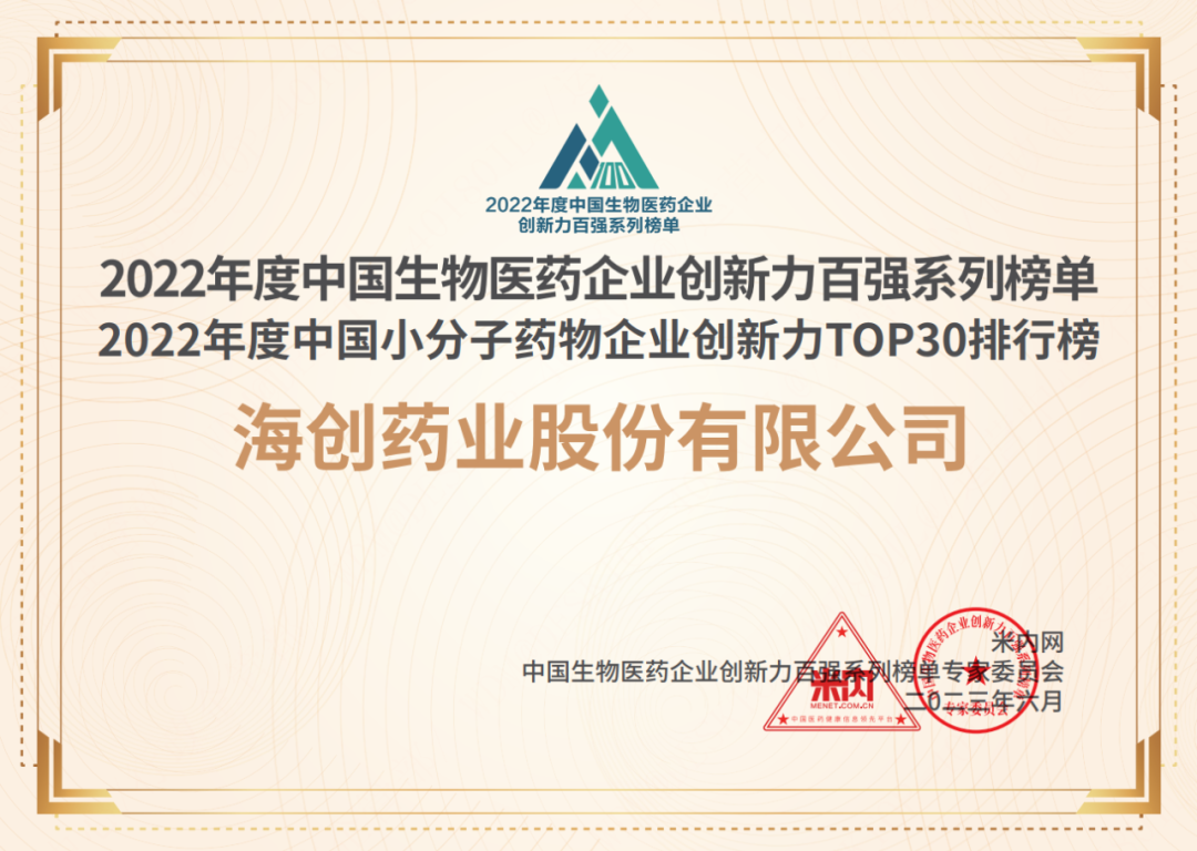 Z6尊龍時凱官網連續三年榮列中國小分子藥物企業創新力TOP30