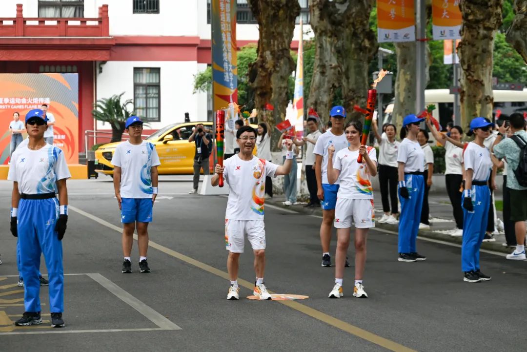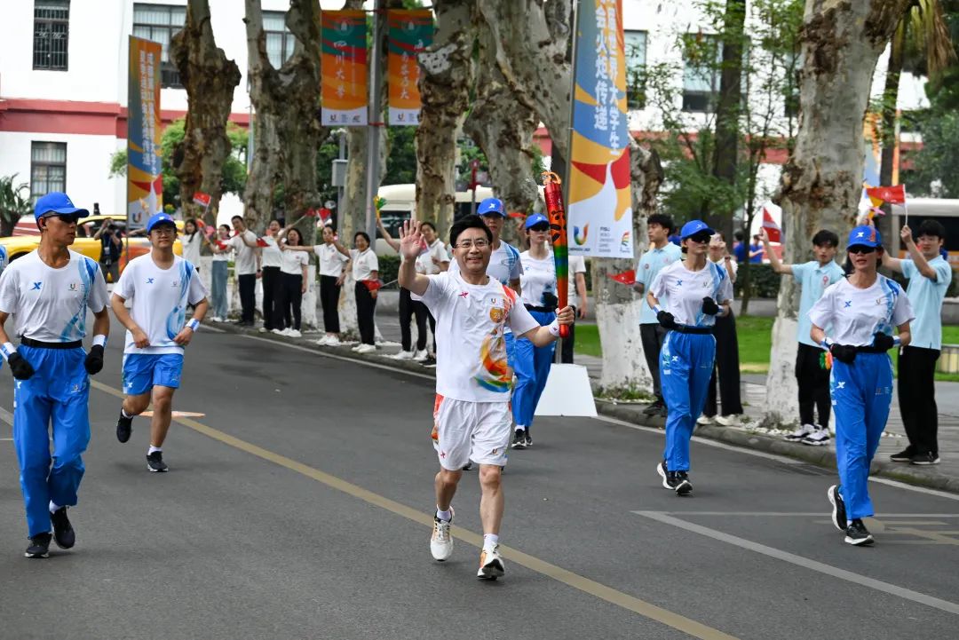 火炬傳遞始于四川大學校園內,四川大學作為成都市的重要高等學府,有著悠久的歷史和深厚的學術底蘊。這個具有象征意義的起點,見證了無數學子的夢想和希望。陳元偉博士在這片充滿活力和智慧的校園里,接過前一位火炬手的火炬,以飽滿的激情和堅定的步伐,向著下一個傳遞點邁進。